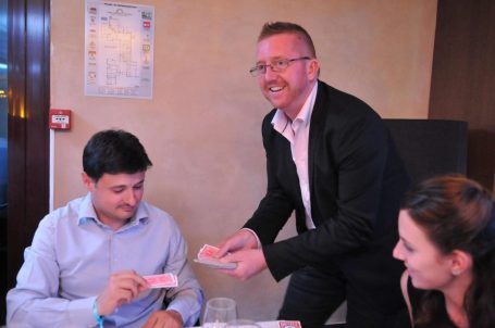 la magie close-up permet à Sylvain d’interagir directement avec vos invités, en stand, déambulation ou de table en table.
